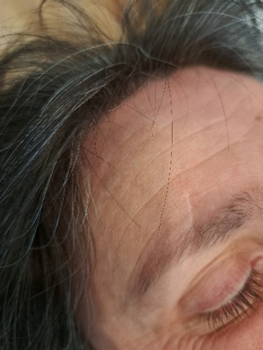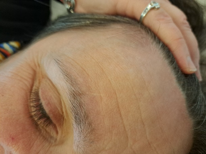 Before treatment : 40 year old scar to brow area restricting brow movement